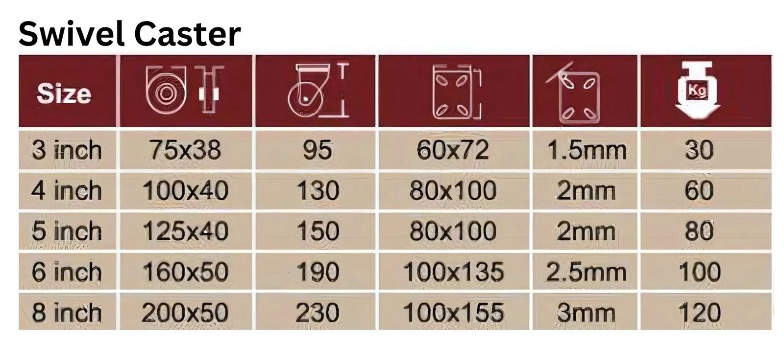 | Size | 3 inch, 4 inch, 5 inch, 6 inch, 8 inch |
