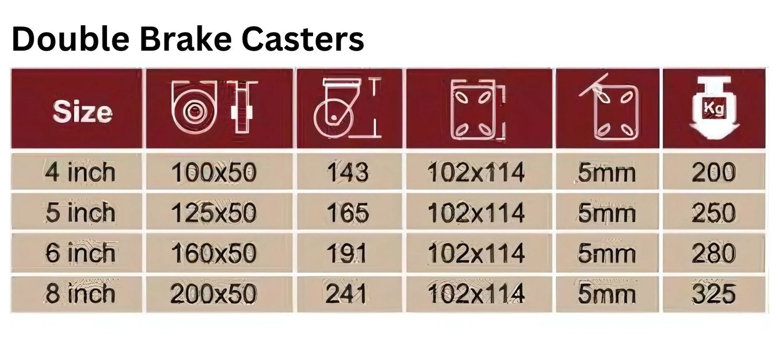 | Wheel Type | Fixed Casters, Swivel Casters, Double Brake Casters |