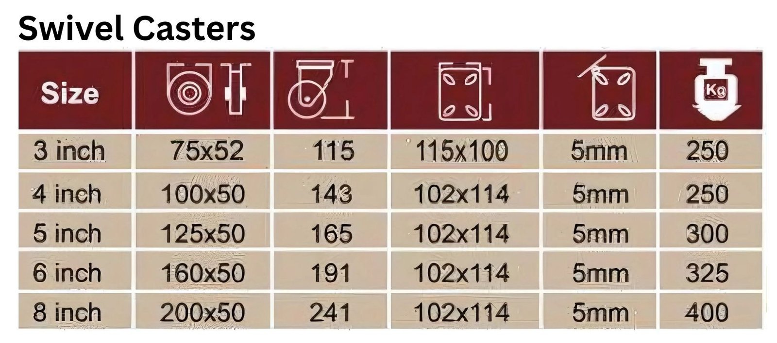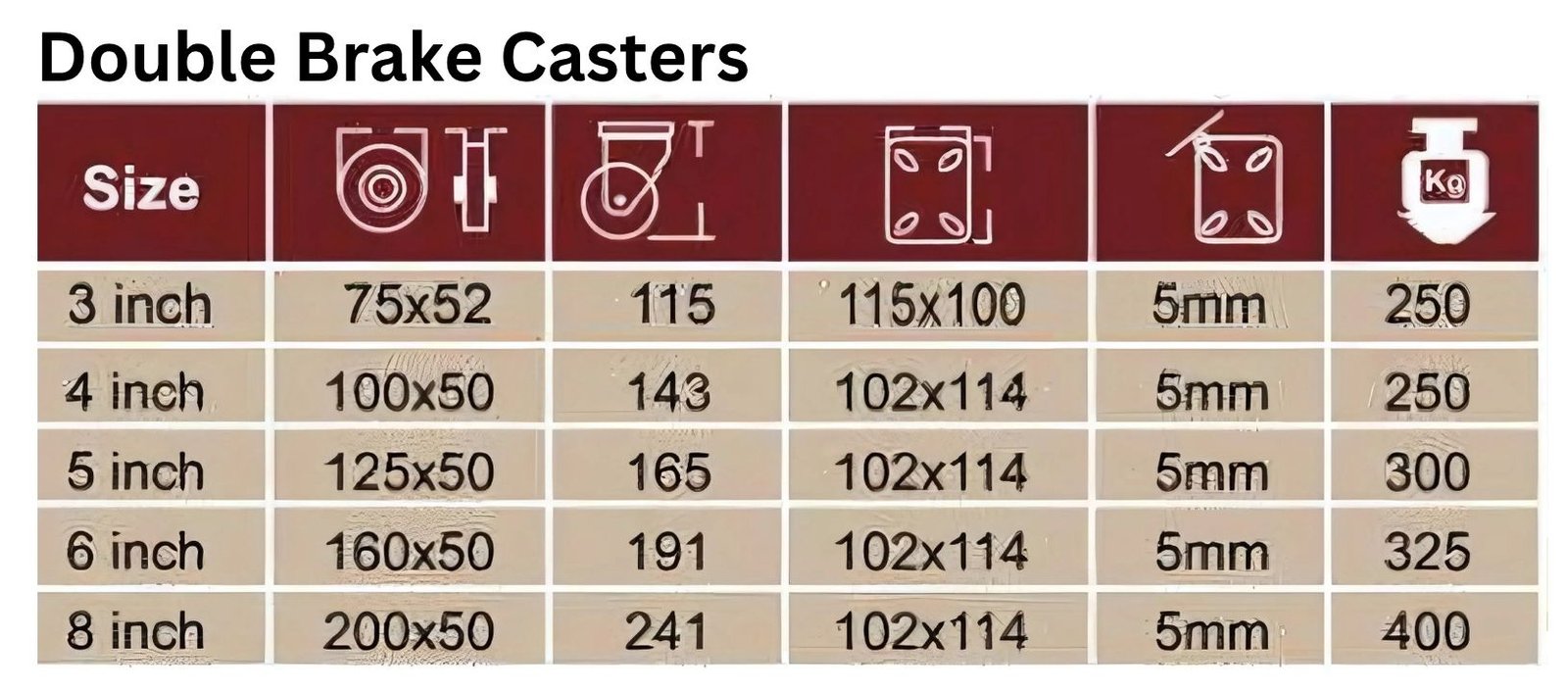 | Wheel Type | Fixed Caster, Swivel Casters, Double Brake Casters |
