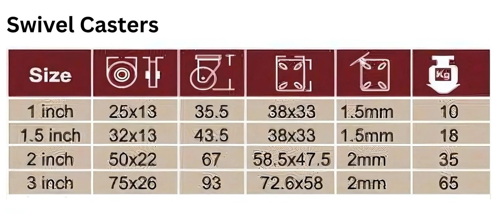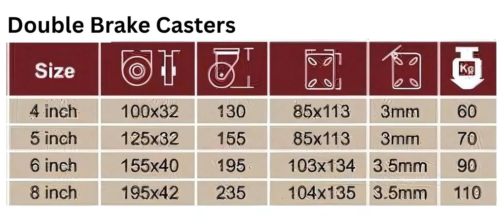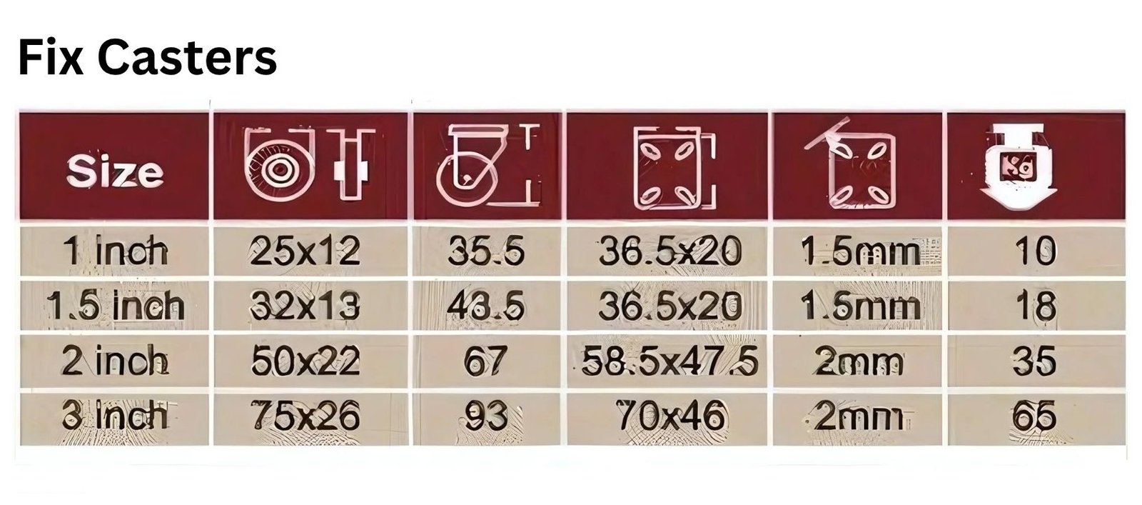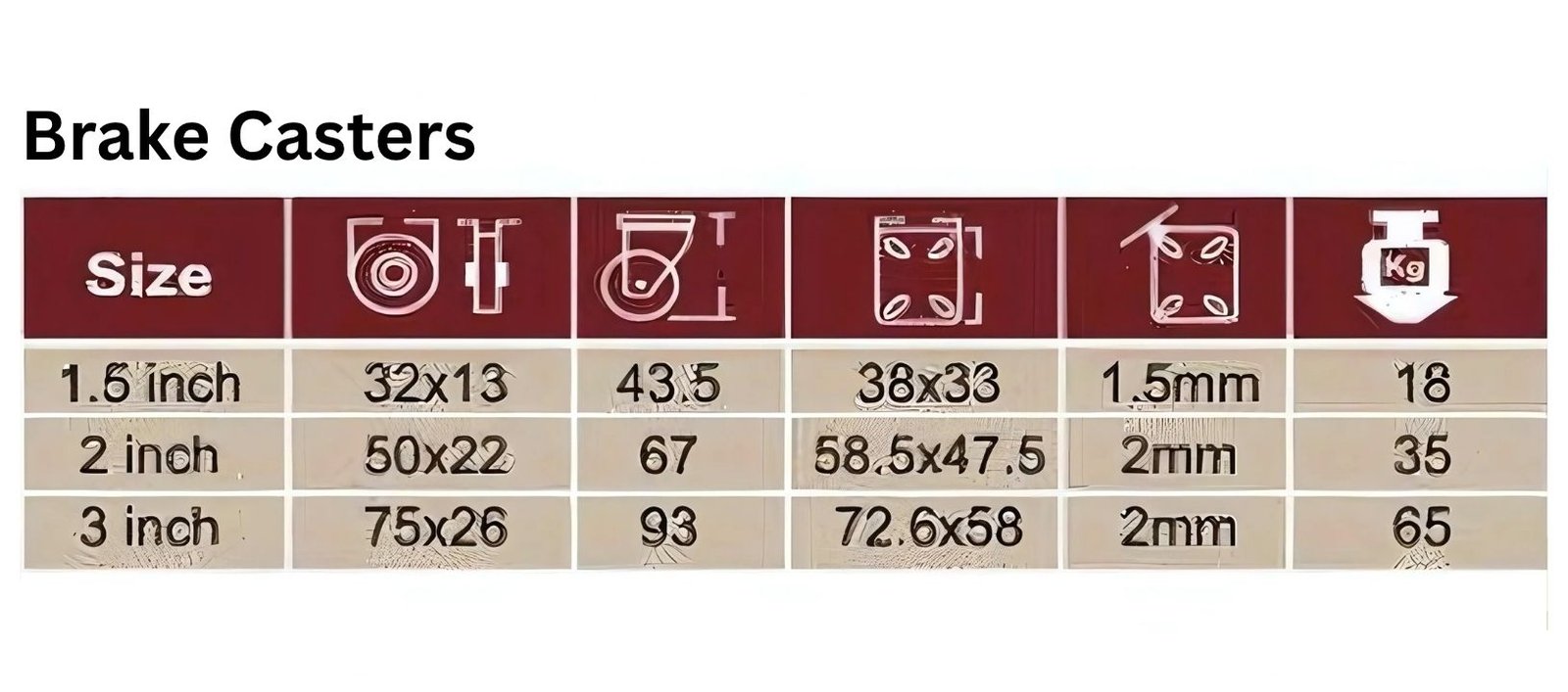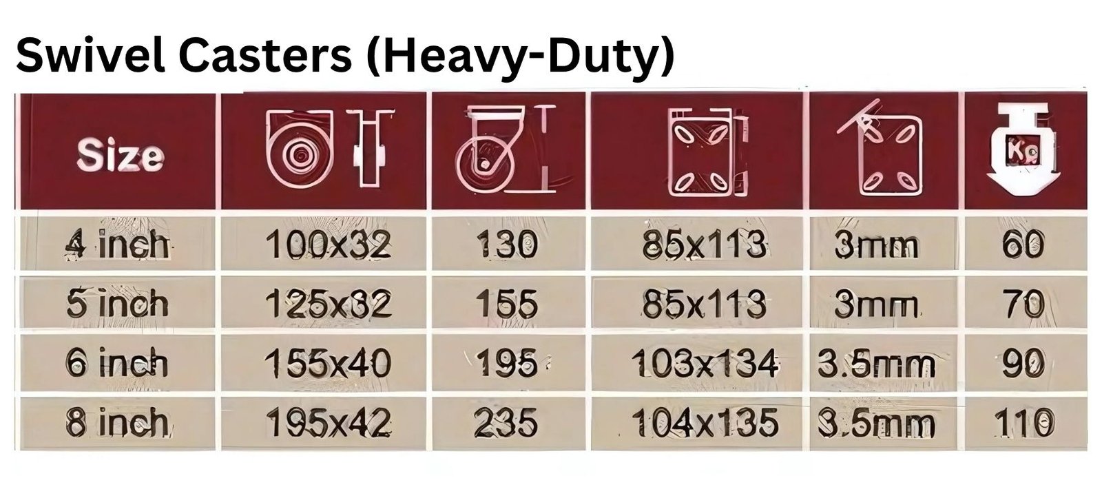 | Wheel Type | Fix Casters, Swivel Casters, Brake Casters, Fixed Casters (Heavy-Duty), Swivel Casters (Heavy-Duty), Double Brake Casters |